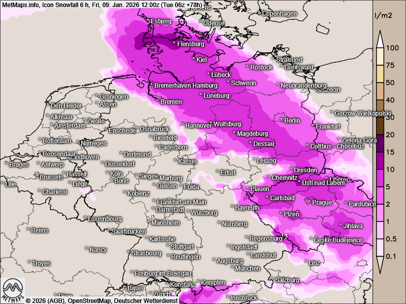 Sechs-Stunden-Schneemengen bis Freitag, 12:00 Uhr