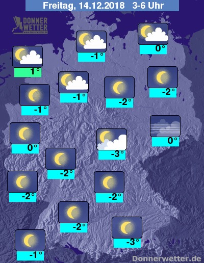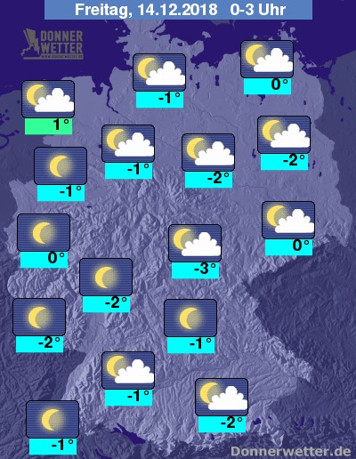 In der Nacht zeigt sich der Himmel in der Südwesthälfte des Landes meist sternenklar. Im Nordosten bleibt es anfangs noch locker bewölkt, später klart es aber auch hier häufig auf. Regional muss mit Nebel und glatten Straßen gerechnet werden.