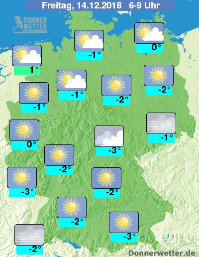 Die Temperaturen sinken auf Werte um 1 Grad C an den Küsten und um -3 Grad C in Franken, in den hohen Lagen des Erzgebirge teils um -10 Grad C.