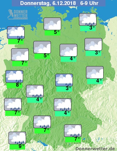 Der Donnerstag erstrahlt in weiten Landesteilen im Einheitsgrau. Im Norden bleibt es bis auf einzelne Schauer an den Küsten meist trocken, im Süden muss weiterhin mit zum Teil kräftigen Regenfällen gerechnet werden.