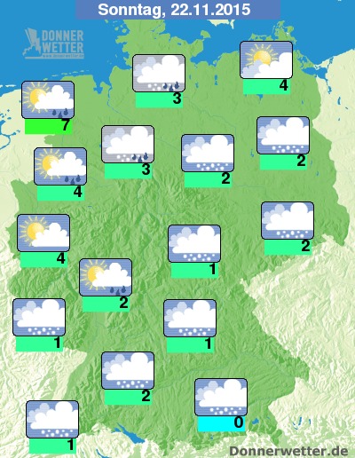 Am Sonntag wird es voraussichtlich noch eine Spur kälter, dabei kann sich zwischen den Wolken im Norden häufiger die Sonne zeigen und hier bleibt es auch trocken, sonst ist es dagegen größtenteils stark bewölkt und besonders im Süden fällt zeitweise Schnee, dazu besteht Glättegefahr! Die Temperatur steigt noch auf 0 Grad am Bodensee und bis 6 Grad an der Nordsee.
