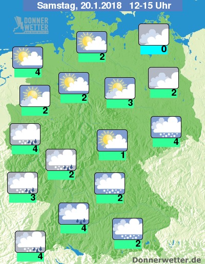 Heute Nachmittag fällt über der Südhälfte des Landes bei kompakter Bewölkung zeitweise Regen, Schneeregen und auch Schnee, dazu kann es zum Teil glatt auf den Straßen werden! Etwas bessere Chancen für Sonnenschein bestehen im Norden, hier bleibt es auch weitgehend trocken. Die Temperatur liegt bei 0 Grad in Vorpommern und etwa 4 Grad entlang des Rheins.
