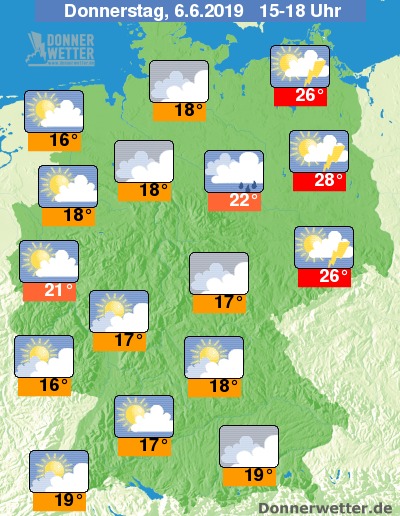 Am Nachmittag brauen sich im Nordosten in der noch sehr warmen und schwülen Luftmasse zum Teil mächtige Gewitterwolken zusammen. Örtlich drohen Unwetter mit Starkregen, Hagelschlag und kräftigen Windböen. Auch im Alpenvorland können teils gewittrige Regengüsse nieder gehen. Sonst gibt es eine Mischung aus Sonne und Wolken. Vereinzelt können im Westen noch Schauer auftreten.