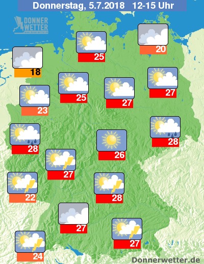 Die Temperaturen dazu bleiben sommerlich. Im äußersten Norden liegen die Höchsttemperaturen heute zwischen 20 und 25 Grad, an den Küsten zum Teil sogar leicht darunter. Im Rest des Landes wird es bei Temperaturen zwischen 25 und 30 Grad noch ein Stück wärmer und teilweise schwül. Vor allem in Teilen Sachsens und Hessens wird die 30 Grad Marke heute voraussichtlich durchbrochen.