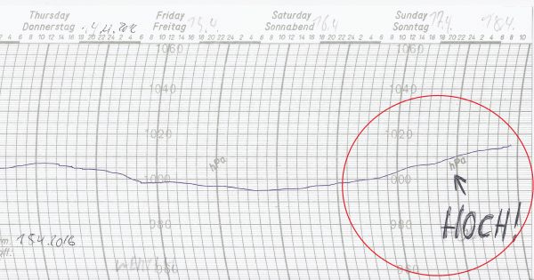 Seit Samstagnachmittag zieht der Luftdruck kontinuierlich an, Hochdruckeinfluss wird in den kommenden Tagen unser Wetter bestimmen: