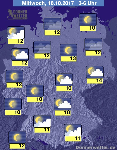 In der Nacht zum Mittwoch halten sich im Nordseeumfeld und im Alpenvorland oft einige Wolken, die jedoch keinen Regen bringen. Im übrigen Bundesgebiet zeigt sich der Himmel locker bewölkt oder sternenklar, dazu bleibt es trocken. Die Temperatur sinkt auf 13 Grad im Rheinland und bis 10 Grad in Unterfranken.
