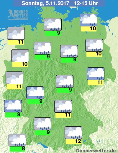Heute Abend heitert der Himmel vom Niederrhein bis zur Nordsee hin auf und hier bleibt es auch trocken. Über der Osthälfte und im Süden fällt unter dichten Wolken zeitweise Regen. Im übrigen Bundesgebiet ist es zwar meist stark bewölkt, Regen fällt dazu jedoch nur noch selten. Die Temperatur liegt bei 9 bis 11 Grad.