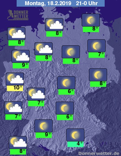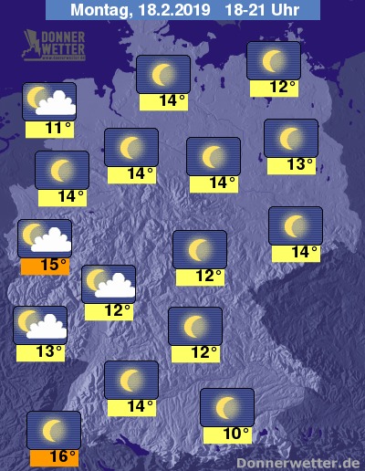 Die Temperaturen sinken bis zum späten Abend auf Werte um 10 Grad C im Rheinland und um 4 Grad C am Alpenrand.