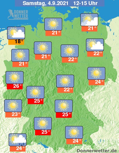 Die Temperaturen erreichen im Nachmittagsverlauf Werte um 19 Grad in Ostfriesland und um 28 Grad in der Kölner Bucht.