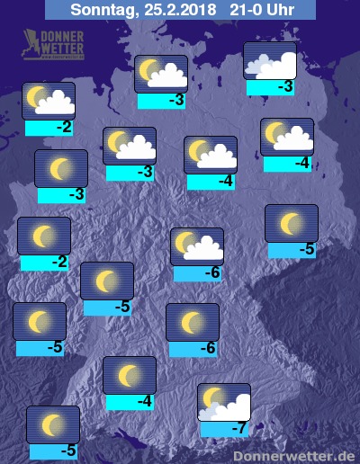 In der ersten Nachthälfte lockert die Wolkendecke im Norden weiter auf, nur an der Ostseeküste bestimmen noch dichte Wolken das Himmelsbild. In den übrigen Landesteilen zeigt sich der Himmel sternenklar.