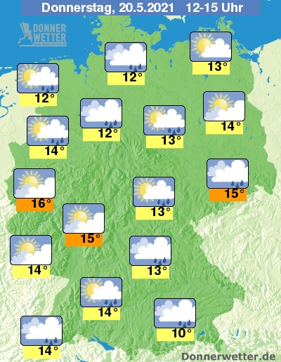 Heute Nachmittag ist es über dem Süden und über Sachsen meist stark bewölkt, dabei bilden sich zeitweise Schauer, regional entwickeln sich auch Gewitter. Im übrigen Bundesgebiet ist es teils heiter, zum Teil stark bewölkt, dazu bilden sich nur einzelne Schauer. Die Temperatur steigt auf 12 Grad in Wilhelmshaven und bis 16 Grad in Köln.