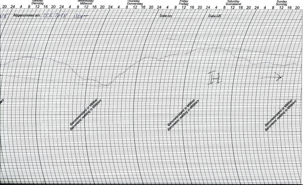Unser Schrieb zeigt den Luftdruckverlauf an unserer Wetterstation in Bonn zwischen Dienstag und Sonntag vergangener Woche.