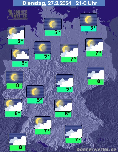 In der Nacht auf Mittwoch zeigt sich der Himmel südlich der Donau so wie in der Südosthälfte stark bewölkt; in den übrigen Landesteilen überwiegt geringe Bewölkung oder der Himmel ist sternenklar. Es bleibt trocken.