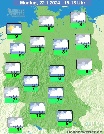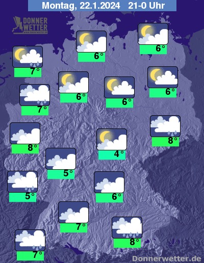 Die Temperaturen gehen bis Mitternacht zurück auf Werte um 8 Grad am Alpenrand und 4 Grad im Thüringer Becken.