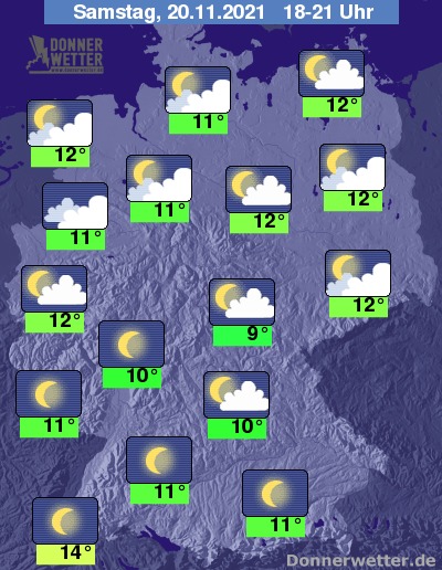 In der Nacht zum Sonntag halten sich über der Nordhälfte weitgehend dichte Wolken, dabei fällt hier und da auch etwas Regen. Im Süden ist es meist sternenklar oder gering bewölkt, lokal bildet sich Nebel. Im übrigen Land ist es teils locker, teils stark bewölkt und dazu trocken. Die Temperatur sinkt auf 10 Grad an der Nordsee und bis 1 Grad in Oberbayern.