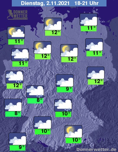 Heute Abend bringen dichte Wolken von NRW, über Hessen bis nach Niederbayern gebietsweise Schauer. Im übrigen Land ist es auch oft stark, teils aber auch aufgelockerter bewölkt, dazu bleibt es weitgehend trocken. Die Temperatur liegt bei 8 Grad in Saarbrücken und 12 Grad in Hamburg.