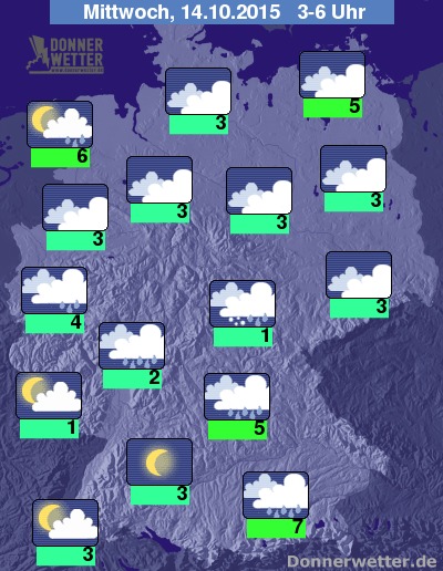 In der Nacht zum Mittwoch fällt über Bayern und Thüringen und bis ins westliche Sachsen hin verbreitet langanhaltender und teils noch ergiebiger Regen, besonders in höheren Lagen ist auch Schneeregen oder Schnee möglich, dabei besteht Glättegefahr. Auch im Westen ist bei dichter Bewölkung gebietsweise Regen, Schneeregen oder Schnee möglich. Im Nordseeumfeld können sich einzelne Schauer entwickeln. Dagegen ist die Bewölkung im Südwesten oft aufgelockert und teils auch sternenklar. Das übrige Bundesgebiet zeigt sich bedeckt, aber weitgehend trocken. Die Temperatur sinkt auf 7 Grad in München und bis 1 Grad im Oberrheingraben.