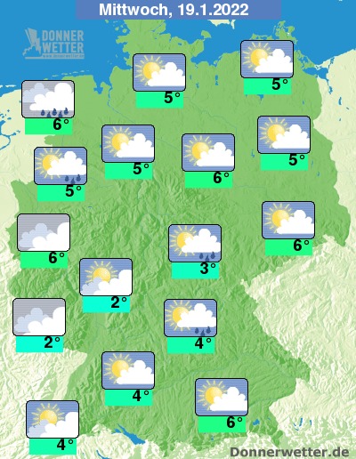 Am Mittwoch ist es im Südosten und über Sachsen gebietsweise heiter, sonst ziehen schon meist dichte Wolken durch und Auflockerungen werden seltener. Es ist zunächst noch überwiegend trocken. Am Abend setzt jedoch in den westlichen Landesteilen Regen, anfangs zum Teil Schneefall ein. Die Temperatur erreicht 2 Grad am Pfälzer Wald und bis 6 Grad in der Lausitz. An der See weht dazu ein oft stürmischer Wind.