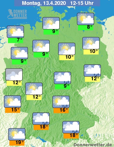 Heute Abend klingen auch die Niederschläge und letzten schwachen Gewitter im Süden nach und nach ab, nur am Alpenrand regnet es gebietsweise noch weiter. Im übrigen Bundesgebiet ist es verbreitet heiter bis sonnig, an den Küsten aber auch wieder oft stärker bewölkt, dazu bleibt es trocken. Die Temperatur liegt bei kühlen 7 Grad in Bremerhaven und bis 20 Grad in Freiburg.