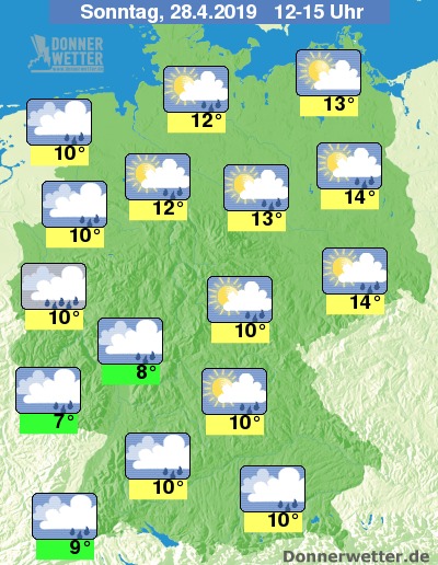 Heute Nachmittag ist es vor allem über der Südwesthälfte des Landes meist stark bewölkt und es bilden sich zeitweise Schauer. Weiter nach Nordosten hin zeigt sich auch häufig die Sonne, jedoch können auch hier dichte Wolken durchziehen und einzelne Schauer bringen. Die Temperatur liegt bei nur 7 Grad am Pfälzer Wald und bis 14 Grad in der Lausitz.