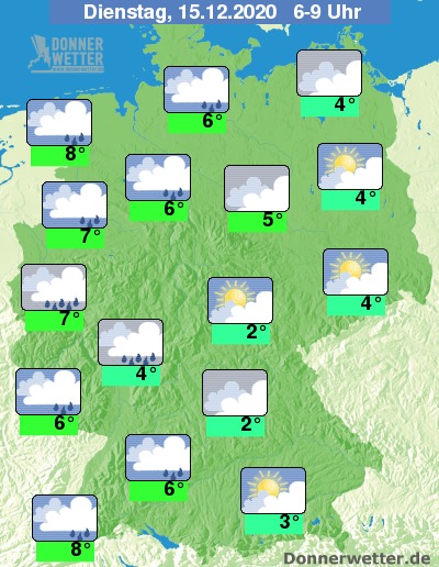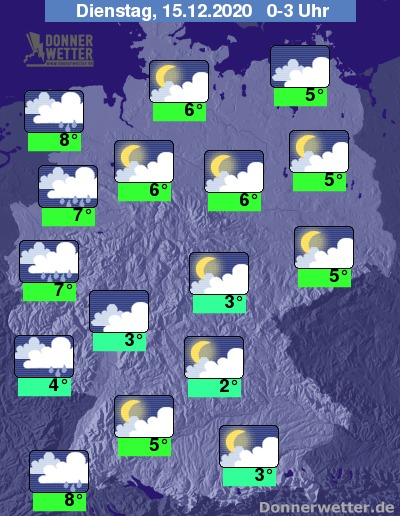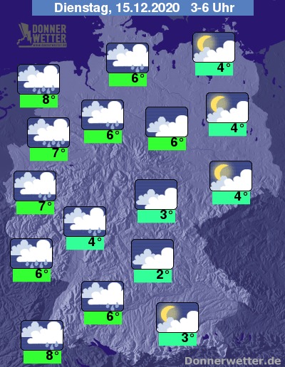Die Temperaturen erreichen in den Frühstunden Werte um 2 Grad in Oberbayern und um 8 Grad in Ostfriesland.
