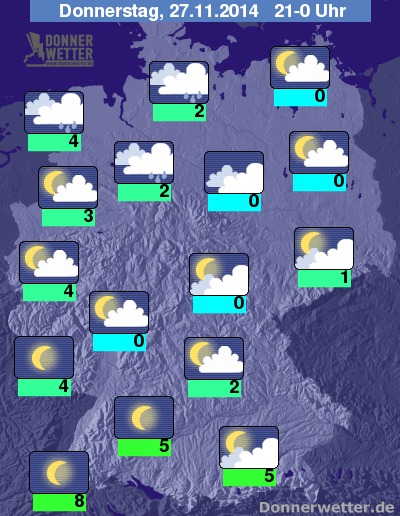Heute Abend reißt der Himmel von Südwesten her mehr und mehr auf und es wird häufig sternenklar, sonst ist es überwiegend aufgelockert oder stark bewölkt, dazu kann in Niedersachsen noch gebietsweise etwas Regen fallen, sonst bleibt es weitgehend trocken. Die Abendtemperatur liegt bei 8 Grad in Freiburg und um 0 Grad an der Müritz.