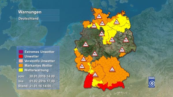 In der Nacht zum Montag bleibt es bedeckt, dabei ist es im Nordosten weitgehend trocken, sonst fällt dagegen häufig und teils auch langanhaltender Regen, am Alpenrand ist der Regen oft ergiebig. Die Temperatur sinkt auf 12 Grad in Köln und bis 2 Grad an der Müritz. Im Süden und Westen weht starker und teils stürmischer Wind.