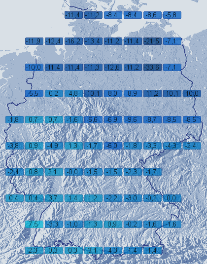 Die aktuellen fühlbaren Temperaturen zeigen in Deutschland Werte zwischen knappen Plusgraden im Westen und -20 Grad C im Osten. Mehr dazu hier im Nowcasting.