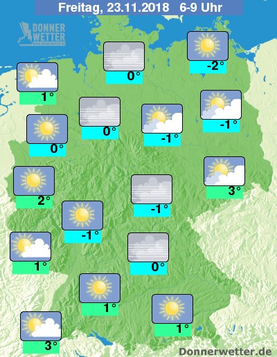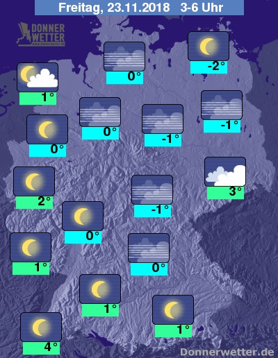 Die Temperaturen sinken auf Werte um 4 Grad C am Oberrhein und um -1 Grad C im Harz.