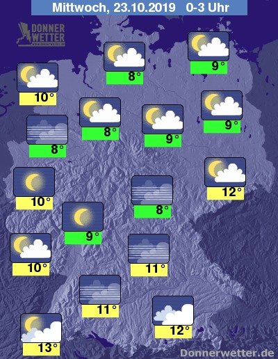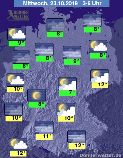 In der Nacht auf Mittwoch zeigt sich der Himmel zunächst noch verbreitet locker bewölkt, im weiteren  Verlauf bildet sich in weiten Teilen des Landes Nebel. Es bleibt trocken.