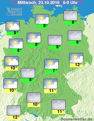 Die Wochenmitte startet vielerorts mit Nebelfelder, die sich in den Früh- und Vormittagsstunden auch noch hartnäckiger halten können. Im Westen und Nordwesten sowie im Vogtland und dem Fichtelgebirge wechseln sich Sonne  und Wolken am Morgen ab. Schauer sind nicht zu erwarten.
