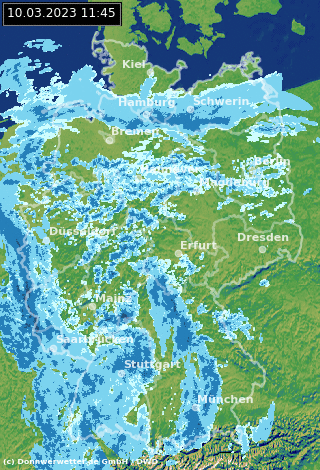 Heute Nachmittag ziehen verbreitet dichte Wolken über das Bundesgebiet hinweg, dabei fällt häufig Regen, im Norden zum Teil auch Schnee. Die Temperatur liegt bei 1 Grad auf Rügen und 13 Grad in der Lausitz.