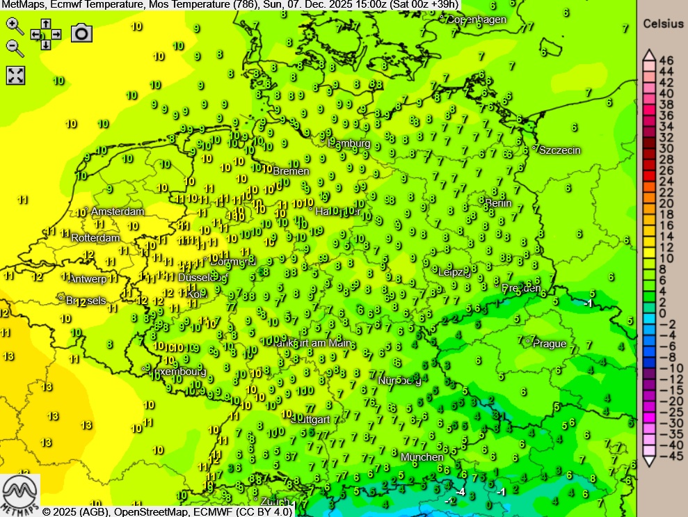 Die Temperaturen erreichen am Höchstwerte um 6 Grad in Dresden und um 13 Grad im Rheinland.