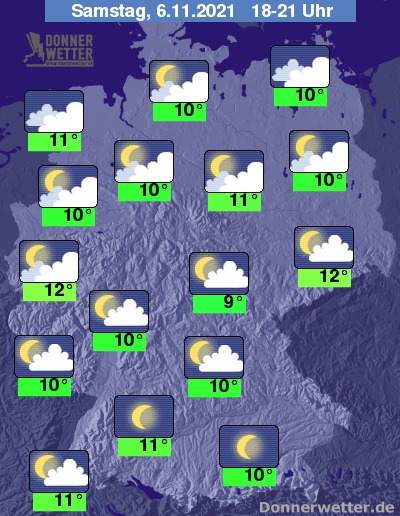 In der Nacht zum Sonntag bleibt der Himmel im Süden und über Sachsen noch meist wechselnd bis aufgelockert bewölkt, hier bleibt es auch bis zum Morgen noch trocken. Im übrigen Land ziehen von Nordwesten her kompakte Wolken durch und es fällt zeitweise Regen. Im Norden und Nordwesten bilden sich teils kräftige Schauer. Die Temperatur sinkt auf 11 Grad in Bremerhaven und bis -1 Grad in München. Im Norden weht ein oft starker, an den Küsten ein stürmischer Wind.