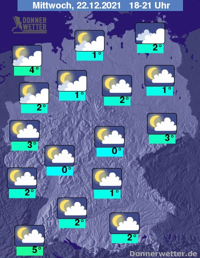 Heute Abend ist der Himmel über der Südhälfte verbreitet locker bewölkt. Im Norden ist es teils locker bis aufgelockert, teils aber auch stark bewölkt. Es bleibt trocken bei 0 Grad in Erfurt und etwa 5 Grad in Freiburg.