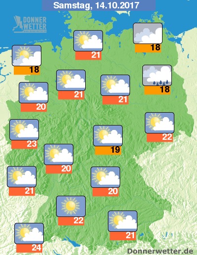 Heute halten sich im Umfeld von Nord- und Ostsee verbreitet dichte Wolken, dabei ist hier und da leichter Regen möglich, auch sonst ist es im Norden noch oft stark, zunehmend aber auch aufgelockert bewölkt und dabei trocken. Südlich davon herrscht verbreitet heiteres bis sonniges und dazu trockenes Spätsommerwetter. Die Temperatur erreicht 18 Grad an der Nordsee und bis 24 Grad im Oberrheingraben.