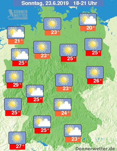 Heute Abend lockert es auch im Süden und Südosten meist auf und es bleibt hier weitgehend trocken. Im übrigen Land ist es überwiegend sonnig, hier und da ziehen ein paar lockere Wolkenfelder durch, dabei bleibt es trocken. Die Temperatur liegt bei 20 Grad in Stralsund und anfangs bis zu 29 Grad in Köln.