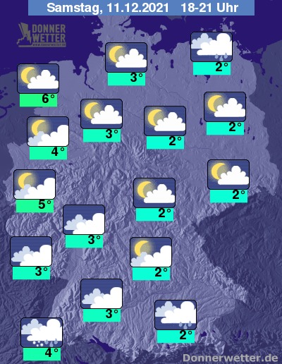Die Temperaturen gehen bis Mitternacht auf Werte um 5 Grad im Nordwesten, 0 Grad am Alpenrand und teils -4 Grad in Ostsachsen zurück.