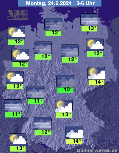 Die Temperaturen gehen in den frühen Morgenstunden zurück auf Werte um 14 bis 10 Grad.