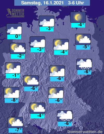 Die Temperaturen liegen in den Frühstunden bei Werten um -8 bis 0 Grad.