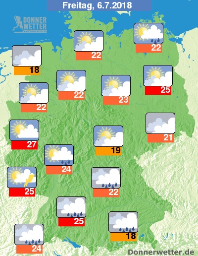 Der Freitag zeigt sich in der Nordhälfte häufig wechselnd bewölkt, entlang der Ostseeküste können im Tagesverlauf zudem einzelne Schauer fallen. Südlich des Mains bleibt der Himmel heute meist stark bewölkt oder bedeckt und immer wieder muss mit Schauern, im Südwesten auch einzelnen Gewittern gerechnet werden.