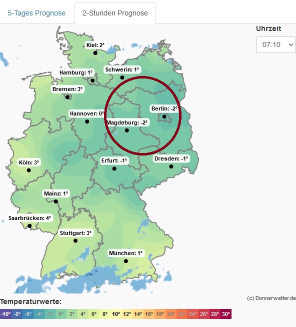 Frische Aufstehtemperaturen am Mittwochmorgen, die Osthälfte startete heute sogar mit leichtem Luftfrost in den Tag: