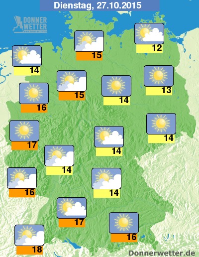 Heute scheint nach Auflösung örtlicher Nebelfelder verbreitet die Sonne von einem dann zumeist wolkenlosen Himmel, hier und da ziehen aber auch einige Wolken durch. Es bleibt landesweit trocken bei Höchstwerten von 12 Grad in Vorpommern und rund 18 Grad im Oberrheingraben.