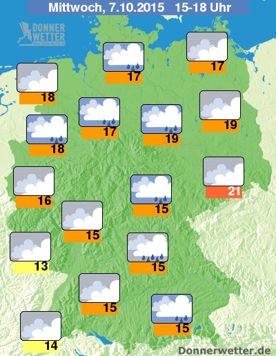 Heute Nachmittag bleibt der Himmel über der Bundesrepublik weitgehend bedeckt, dabei fällt vor allem in einem breiten Streifen von Bayern, über Thüringen, Niedersachsen bis nach Schleswig-Holstein hinein oft langanhaltender und zum Teil auch kräftiger Regen. In den anderen Landesteilen bleibt es hingegen oft trocken oder es regnet nur gelegentlich. Auflockerungen sind hier aber dennoch eher selten. Die Temperatur steigt auf 13 Grad am Pfälzer Wald und bis 21 Grad in Dresden.