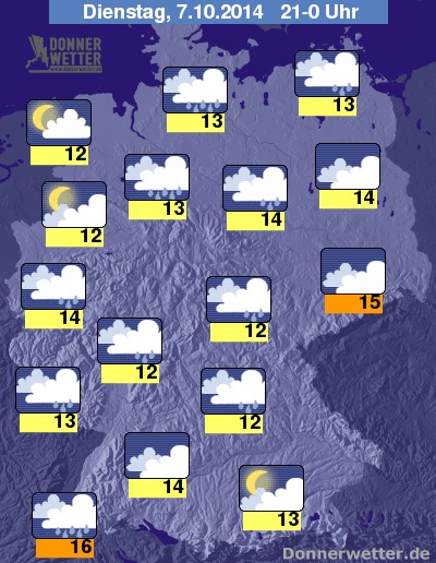 Heute Abend halten sich verbreitet dichte Wolken, Auflockerungen sind am ehesten im Nordseeumfeld, sowie im Südosten des Landes möglich, hier bleibt es meist trocken, in den anderen Landesteilen fällt jedoch gebietsweise weiterer Regen. Im Nordseeumfeld weht ein teils stürmischer Wind, dabei sind einzelne Sturmböen möglich. Die Temperatur liegt am Abend noch bei 16 Grad im Raum Freiburg und rund 12 Grad im Emsland.