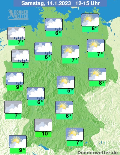 Heute Nachmittag bleibt es stark bewölkt oder bedeckt. Etwa über der Nordwesthälfte des Landes fällt verbreitet Regen , während es weiter nach Osten und Süden hin noch trocken bleibt. Die Temperatur liegt bei 5 Grad im Vogtland und 10 Grad in Stuttgart. Im Norden und Westen ist es zum Teil stürmisch, an den Küsten und auf den Bergen herrscht Sturm.