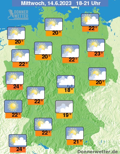 Am Donnerstag ist es teilweise heiter, teils ziehen aber auch einige Quellwolken auf, dabei bleibt es weitgehend trocken. Dagegen ist es über dem Osten und Nordosten oft stark bewölkt und es bilden sich zudem lokale Schauer. Die Temperatur steigt auf 19 Grad in Rostock und bis 26 Grad in Bonn.