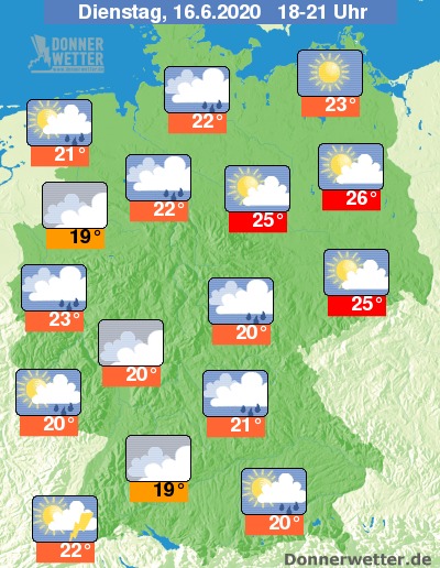 Am frühen Abend liegen die Temperaturen noch zwischen 19 und 26 Grad, am wärmsten bleibt es dabei in Berlin.