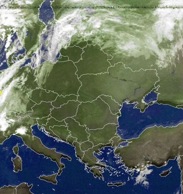 Auf dem Satellitenausschnitt zeigen sich Ost- und Südosteuropa, sowie das zentrale und östliche Mittelmeer verbreitet nur gering bewölkt oder wolkenlos, hier kann man unter Hochdruckeinfluss vielfach das freundliche und milde Herbstwetter genießen. Weiter nach Westen und Nordwesten herrscht dagegen Tiefdruckeinfluss mit vielen Wolken und zeitweiligen Schauern.