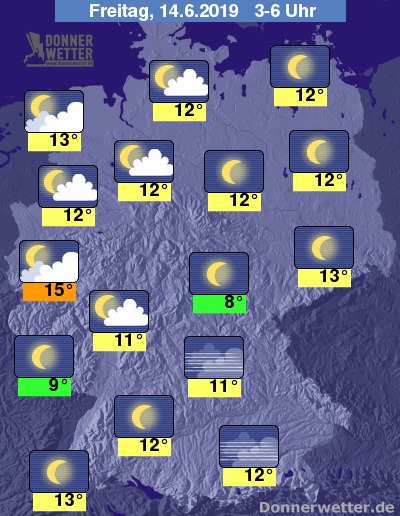 Während der zweiten Nachthälfte bleibt es trocken und häufig auch sternenklar. Lediglich über den Nordwesten ziehen einige Wolkenfelder hinweg. Im Süden bilden sich stellenweise Nebelfelder.